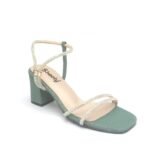 Elegant Olive Green Rhinestone Block Heel Sandals