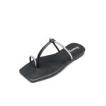 Sheoly Black Rhinestone Toe Ring Flat Sandals