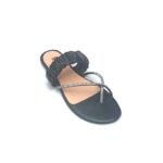 Sheoly Black Square Toe Rhinestone Flat Sandals